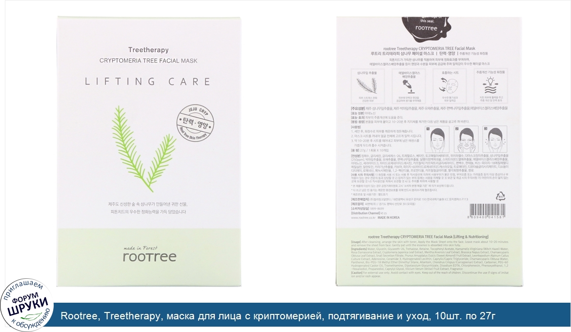 Друзья, если у вас есть отзыв/дополнение/комментарий/вопрос относительно Rootree, Treetherapy, маска для лица с криптомерией, подтягивание и уход, 10шт. по 27г - напишите его ответом в эту тему (это будет полезно всему сообществу в целом и вам в отдельности).