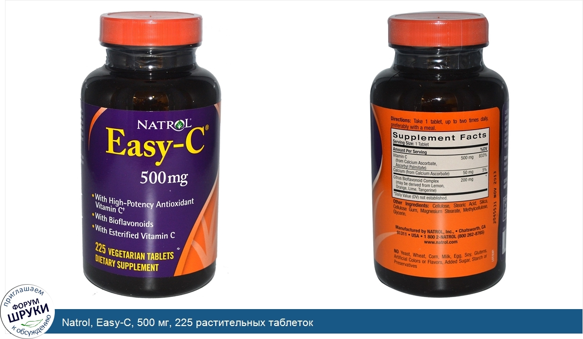 Друзья, если у вас есть отзыв/дополнение/комментарий/вопрос относительно Natrol, Easy-C, 500 мг, 225 растительных таблеток - напишите его ответом в эту тему (это будет полезно всему сообществу в целом и вам в отдельности).