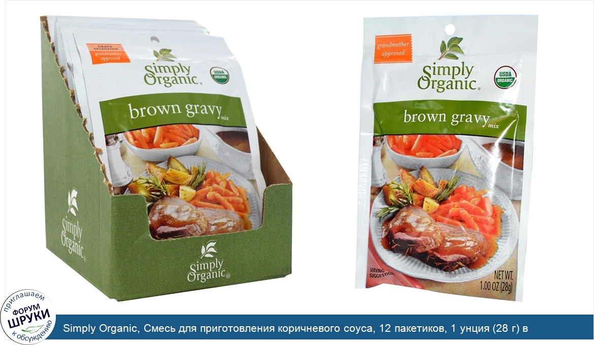 Simply Organic, Смесь для приготовления коричневого соуса, 12 пакетиков, 1 унция (28 г) в каждом