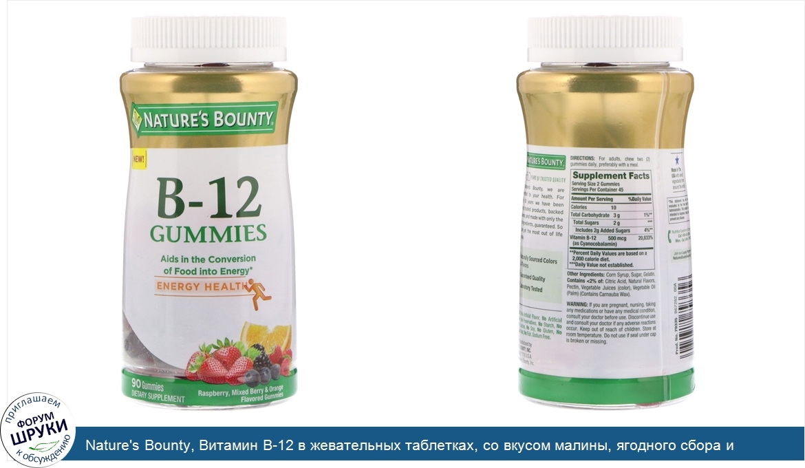Друзья, если у вас есть отзыв/дополнение/комментарий/вопрос относительно Nature's Bounty, Витамин B-12 в жевательных таблетках, со вкусом малины, ягодного сбора и апельсина, 90 жевательных таблеток - напишите его ответом в эту тему (это будет полезно всему сообществу в целом и вам в отдельности).