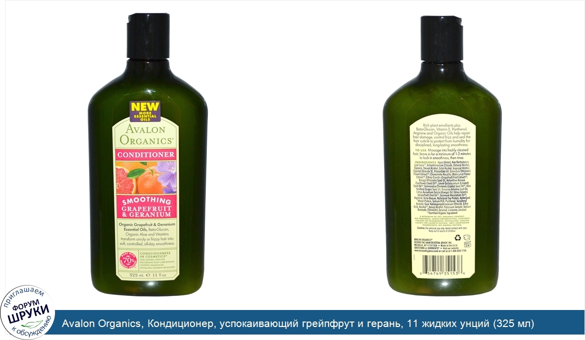 Друзья, если у вас есть отзыв/дополнение/комментарий/вопрос относительно Avalon Organics, Кондиционер, успокаивающий грейпфрут и герань, 11 жидких унций (325 мл) - напишите его ответом в эту тему (это будет полезно всему сообществу в целом и вам в отдельности).