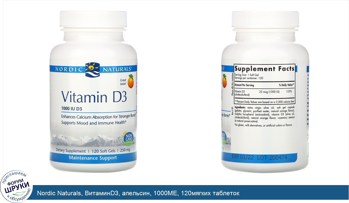 Друзья, если у вас есть отзыв/дополнение/комментарий/вопрос относительно Nordic Naturals, ВитаминD3, апельсин, 1000МЕ, 120мягких таблеток - напишите его ответом в эту тему (это будет полезно всему сообществу в целом и вам в отдельности).
