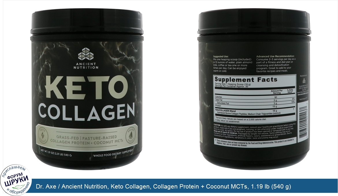 Dr. Axe / Ancient Nutrition, Keto Collagen, Collagen Protein + Coconut MCTs, 1.19 lb (540 g)