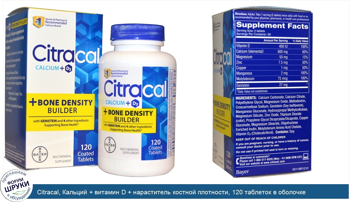 Друзья, если у вас есть отзыв/дополнение/комментарий/вопрос относительно Citracal, Кальций + витамин D + нараститель костной плотности, 120 таблеток в оболочке - напишите его ответом в эту тему (это будет полезно всему сообществу в целом и вам в отдельности).