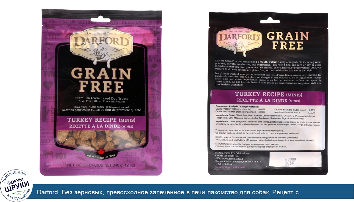 Друзья, если у вас есть отзыв/дополнение/комментарий/вопрос относительно Darford, Без зерновых, превосходное запеченное в печи лакомство для собак, Рецепт с индейкой, Мини, 12 унц. (340 г) - напишите его ответом в эту тему (это будет полезно всему сообществу в целом и вам в отдельности).