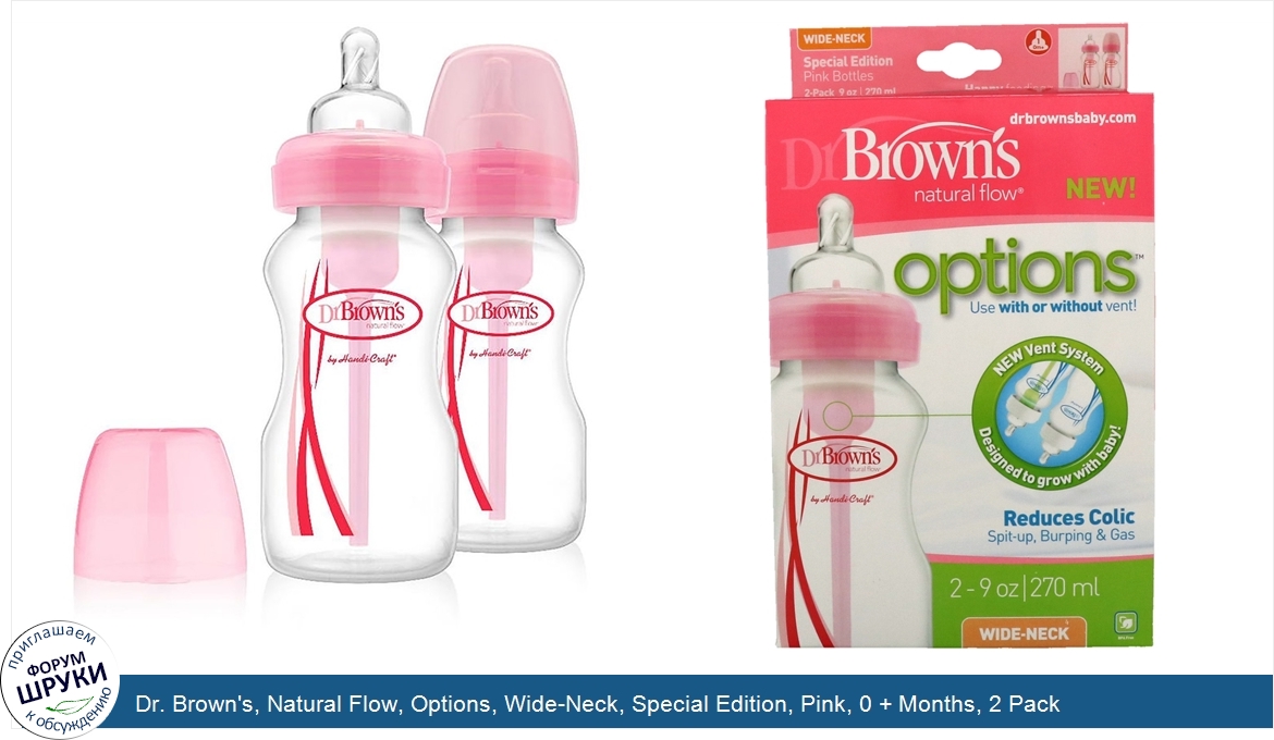 Друзья, если у вас есть отзыв/дополнение/комментарий/вопрос относительно Dr. Brown's, Natural Flow, Options, Wide-Neck, Special Edition, Pink, 0 + Months, 2 Pack Bottles, 9 oz (270 ml) Each - напишите его ответом в эту тему (это будет полезно всему сообществу в целом и вам в отдельности).