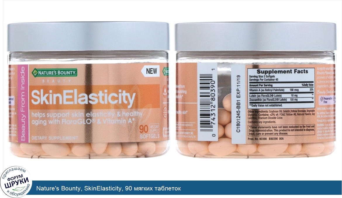 [DESCRIPT]Beauty. Dietary Supplement. 45 Day Supply. Beauty From Inside. Helps support skin elasticity healthy aging with FloraGLO® Vitamin A. Nourishing FloraGLO derived from marigolds, serves as skin's nourishing defense to support skin elasticity. Vitamin A is essential for healthy skin. Amplify your daily beauty routine with Nature's Bounty Beauty Gels. Experience the supportive powers of vitamins and nutrients backed by science and made with only the purest ingredients.guaranteed. Beauty Starts on the Inside. Preservative Free. Scientifically Designed. Guaranteed Quality.[/DESCRIPT]... (описание дополняется)