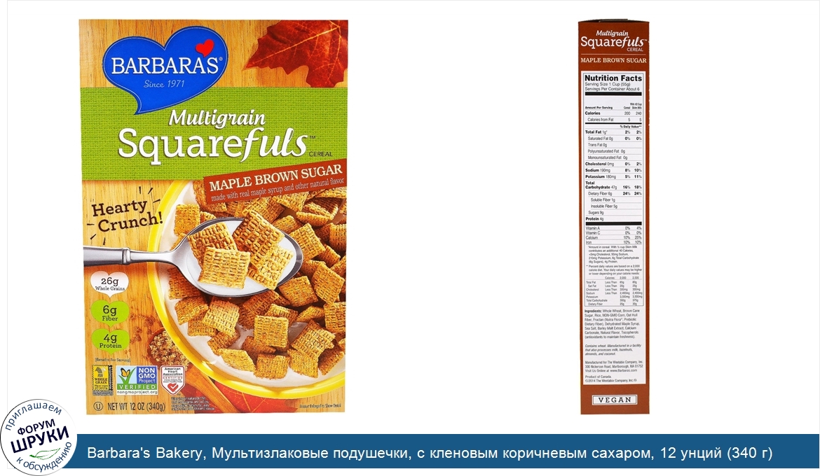 Друзья, если у вас есть отзыв/дополнение/комментарий/вопрос относительно Barbara's Bakery, Мультизлаковые подушечки, с кленовым коричневым сахаром, 12 унций (340 г) - напишите его ответом в эту тему (это будет полезно всему сообществу в целом и вам в отдельности).