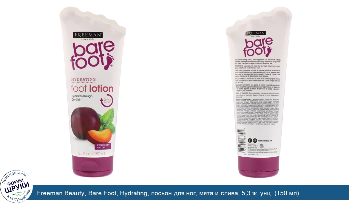 Freeman Beauty, Bare Foot, Hydrating, лосьон для ног, мята и слива, 5,3 ж. унц. (150 мл)