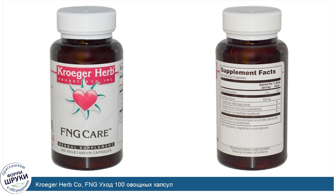 Друзья, если у вас есть отзыв/дополнение/комментарий/вопрос относительно Kroeger Herb Co, FNG Уход 100 овощных капсул - напишите его ответом в эту тему (это будет полезно всему сообществу в целом и вам в отдельности).