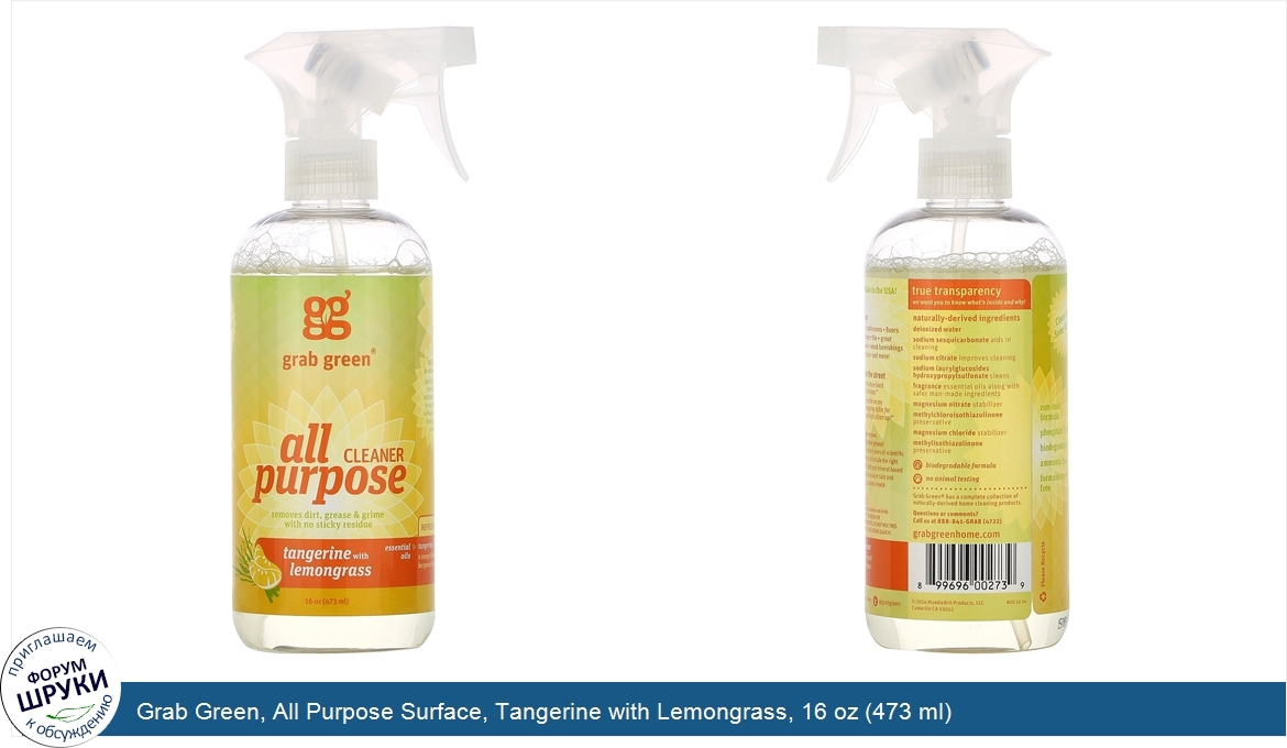 Друзья, если у вас есть отзыв/дополнение/комментарий/вопрос относительно Grab Green, All Purpose Surface, Tangerine with Lemongrass, 16 oz (473 ml) - напишите его ответом в эту тему (это будет полезно всему сообществу в целом и вам в отдельности).
