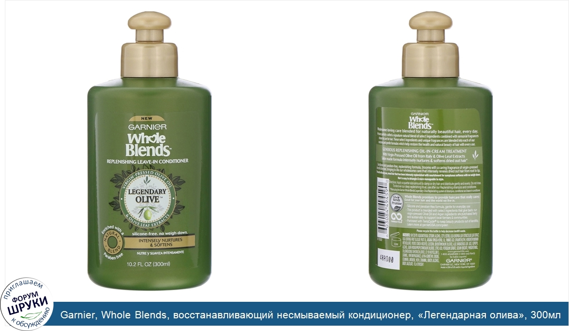 Garnier, Whole Blends, восстанавливающий несмываемый кондиционер, «Легендарная олива», 300мл