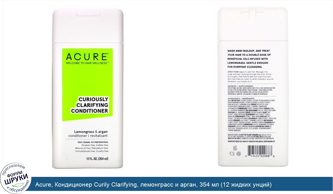 Друзья, если у вас есть отзыв/дополнение/комментарий/вопрос относительно Acure, Кондиционер Curily Clarifying, лемонграсс и арган, 354 мл (12 жидких унций) - напишите его ответом в эту тему (это будет полезно всему сообществу в целом и вам в отдельности).