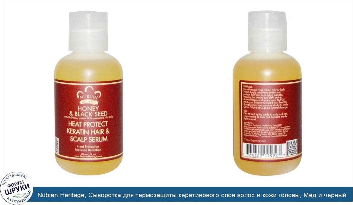 Друзья, если у вас есть отзыв/дополнение/комментарий/вопрос относительно Nubian Heritage, Сыворотка для термозащиты кератинового слоя волос и кожи головы, Мед и черный тмин, 4 жидких унции (119 мл) - напишите его ответом в эту тему (это будет полезно всему сообществу в целом и вам в отдельности).