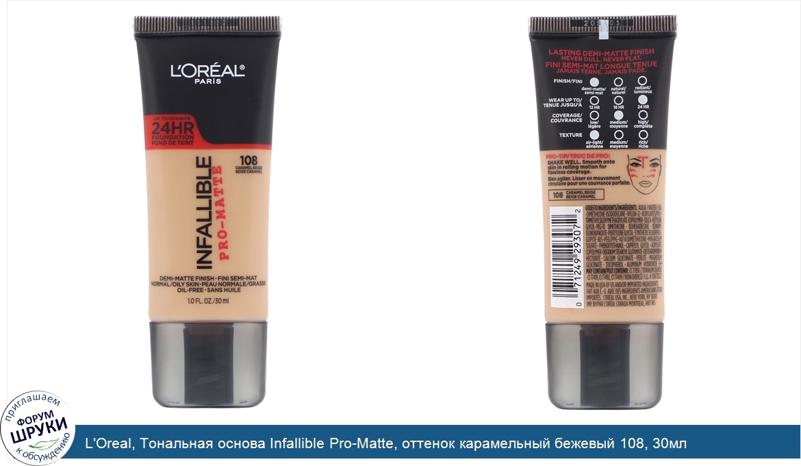 Друзья, если у вас есть отзыв/дополнение/комментарий/вопрос относительно L'Oreal, Тональная основа Infallible Pro-Matte, оттенок карамельный бежевый 108, 30мл - напишите его ответом в эту тему (это будет полезно всему сообществу в целом и вам в отдельности).