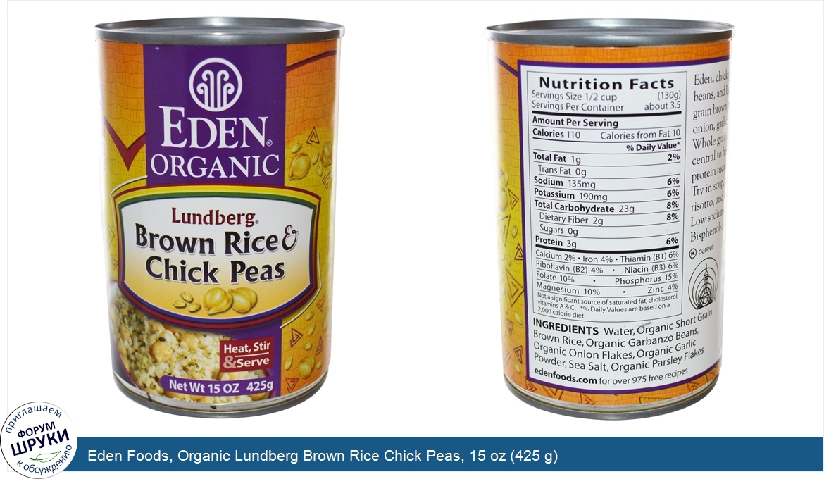 ru Eden Foods, Organic Lundberg Brown Rice Chick Peas, 15 oz (425 g)