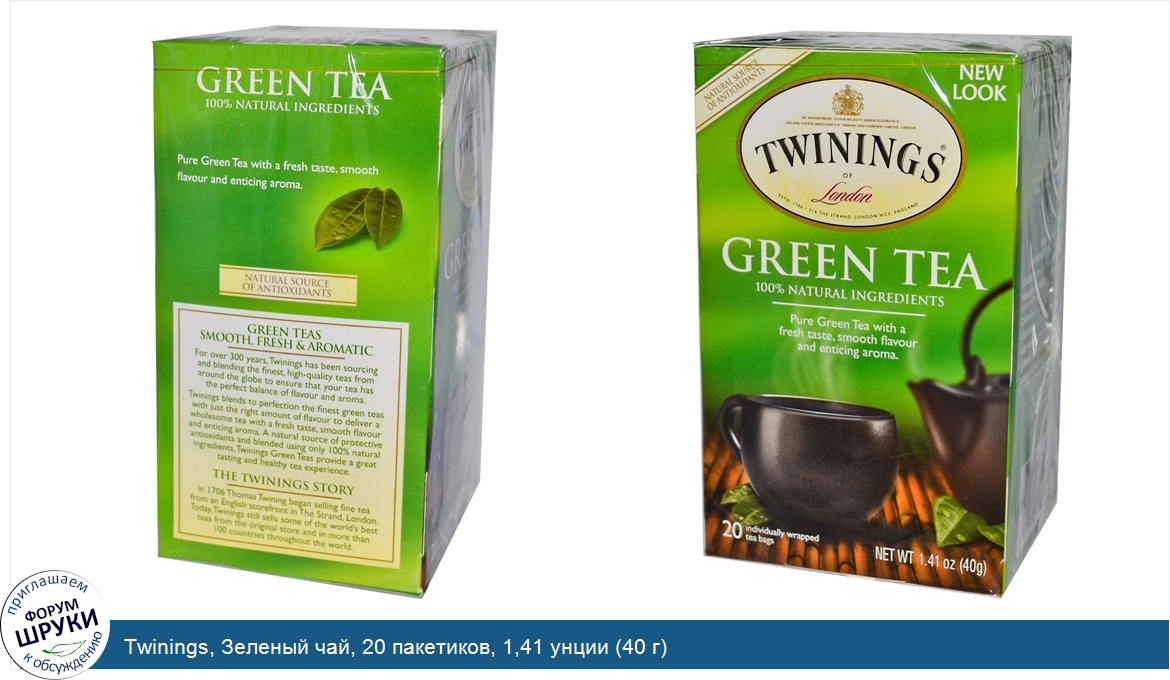 Друзья, если у вас есть отзыв/дополнение/комментарий/вопрос относительно Twinings, Зеленый чай, 20 пакетиков, 1,41 унции (40 г) - напишите его ответом в эту тему (это будет полезно всему сообществу в целом и вам в отдельности).