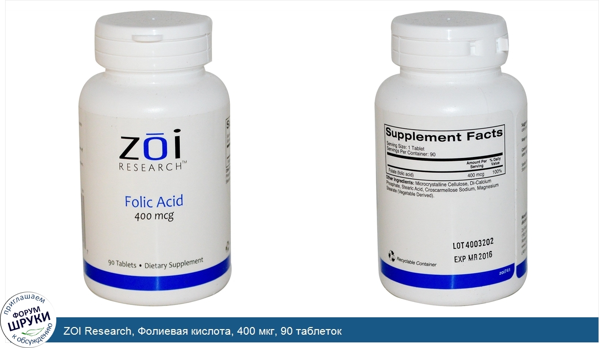ZOI Research, Фолиевая кислота, 400 мкг, 90 таблеток