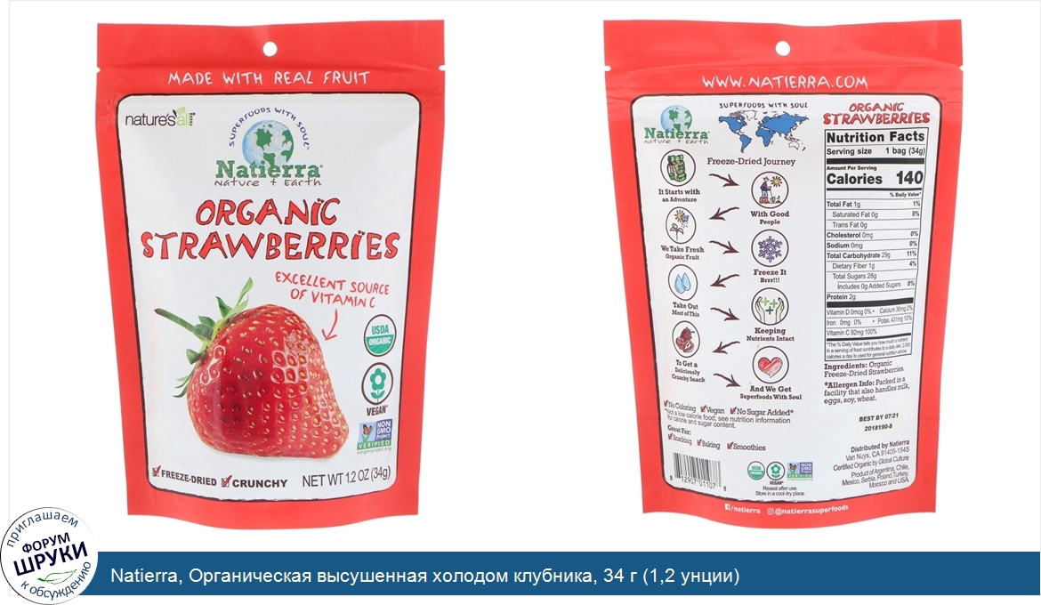 Друзья, если у вас есть отзыв/дополнение/комментарий/вопрос относительно Natierra, Органическая высушенная холодом клубника, 34 г (1,2 унции) - напишите его ответом в эту тему (это будет полезно всему сообществу в целом и вам в отдельности).