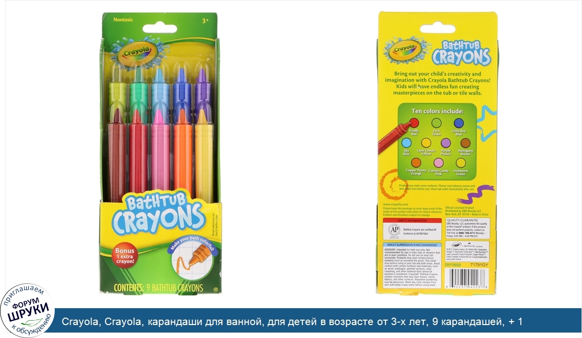 Друзья, если у вас есть отзыв/дополнение/комментарий/вопрос относительно Crayola, Crayola, карандаши для ванной, для детей в возрасте от 3-х лет, 9 карандашей, + 1 бонусный карандаш - напишите его ответом в эту тему (это будет полезно всему сообществу в целом и вам в отдельности).