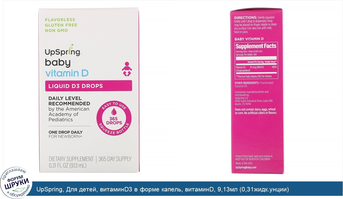 Друзья, если у вас есть отзыв/дополнение/комментарий/вопрос относительно UpSpring, Для детей, витаминD3 в форме капель, витаминD, 9,13мл (0,31жидк.унции) - напишите его ответом в эту тему (это будет полезно всему сообществу в целом и вам в отдельности).