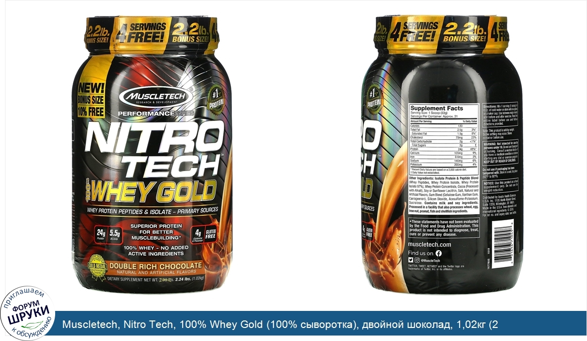 Друзья, если у вас есть отзыв/дополнение/комментарий/вопрос относительно Muscletech, Nitro Tech, 100% Whey Gold (100% сыворотка), двойной шоколад, 1,02кг (2,24фунта) - напишите его ответом в эту тему (это будет полезно всему сообществу в целом и вам в отдельности).