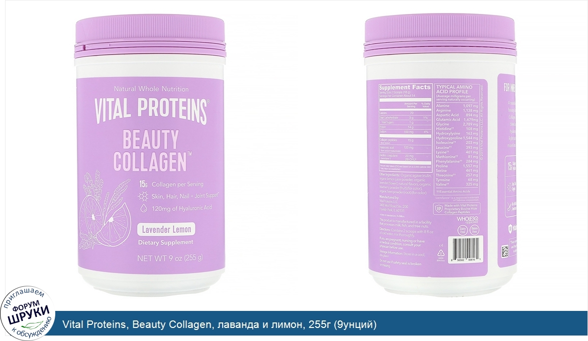 Друзья, если у вас есть отзыв/дополнение/комментарий/вопрос относительно Vital Proteins, Beauty Collagen, лаванда и лимон, 255г (9унций) - напишите его ответом в эту тему (это будет полезно всему сообществу в целом и вам в отдельности).