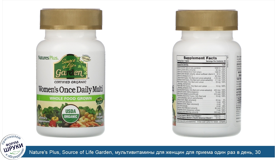 Друзья, если у вас есть отзыв/дополнение/комментарий/вопрос относительно Nature's Plus, Source of Life Garden, мультивитамины для женщин для приема один раз в день, 30 веганских таблеток - напишите его ответом в эту тему (это будет полезно всему сообществу в целом и вам в отдельности).