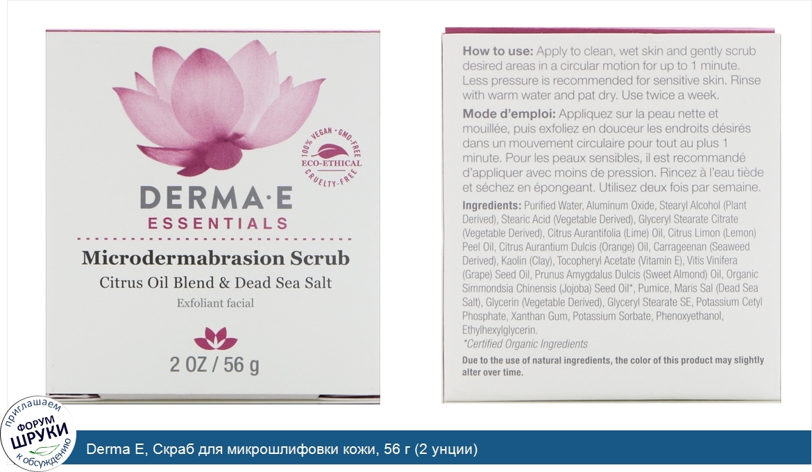 Друзья, если у вас есть отзыв/дополнение/комментарий/вопрос относительно Derma E, Скраб для микрошлифовки кожи, 56 г (2 унции) - напишите его ответом в эту тему (это будет полезно всему сообществу в целом и вам в отдельности).