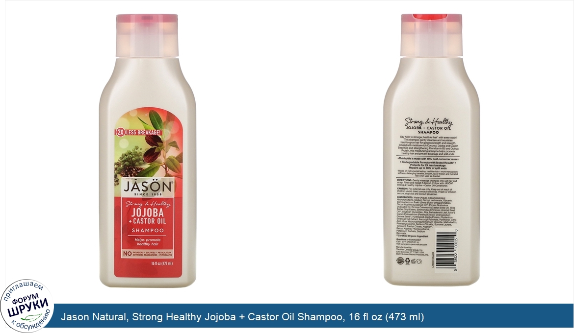 ru Jason Natural, Strong Healthy Jojoba + Castor Oil Shampoo, 16 fl oz (473 ml)