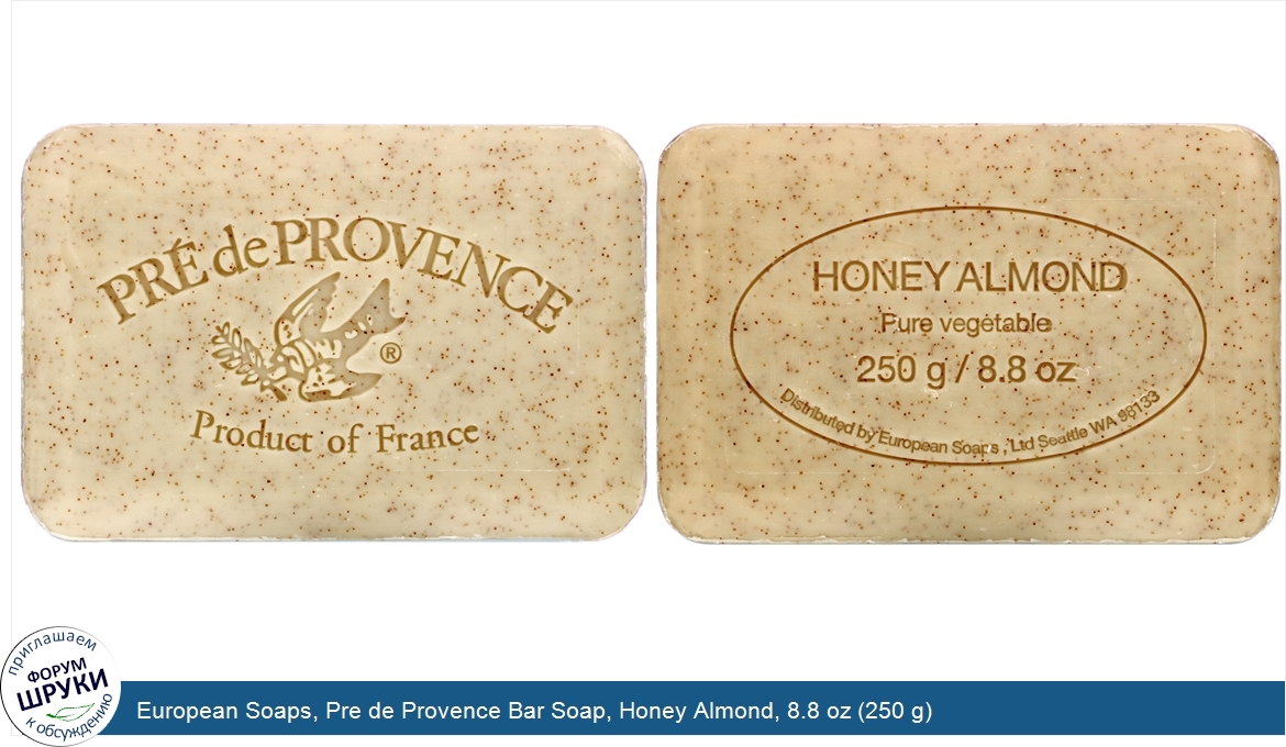 Друзья, если у вас есть отзыв/дополнение/комментарий/вопрос относительно European Soaps, Pre de Provence Bar Soap, Honey Almond, 8.8 oz (250 g) - напишите его ответом в эту тему (это будет полезно всему сообществу в целом и вам в отдельности).