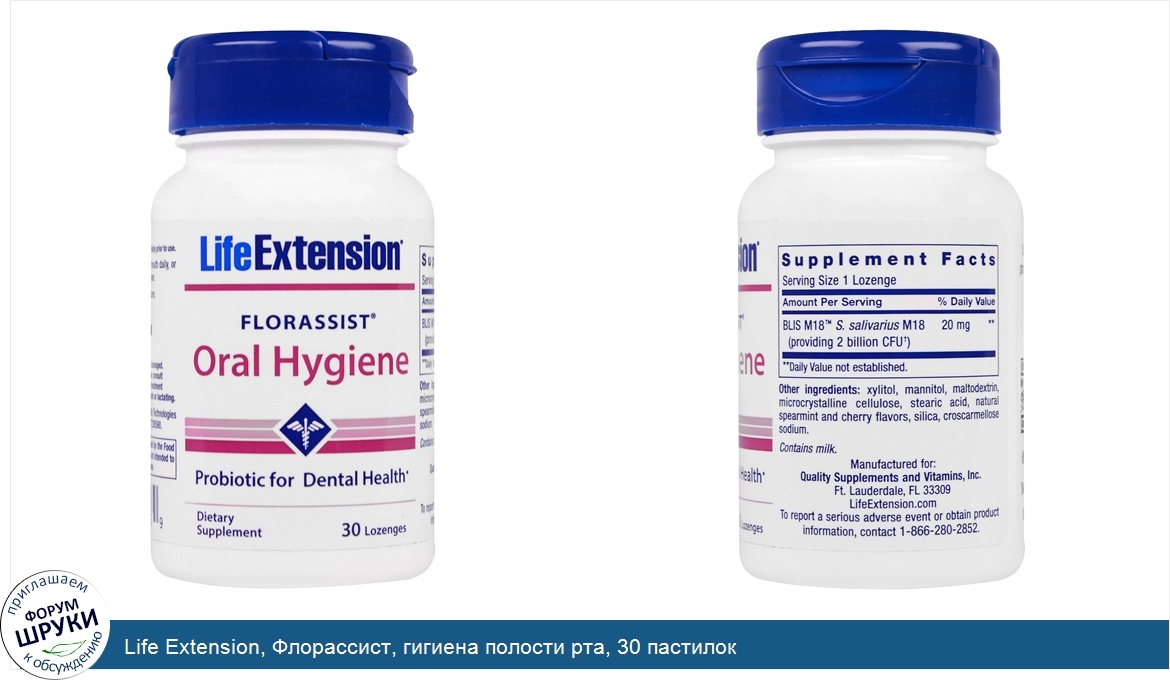 ru Life Extension, Флорассист, гигиена полости рта, 30 пастилок