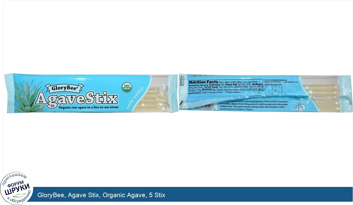 ru GloryBee, Agave Stix, Organic Agave, 5 Stix
