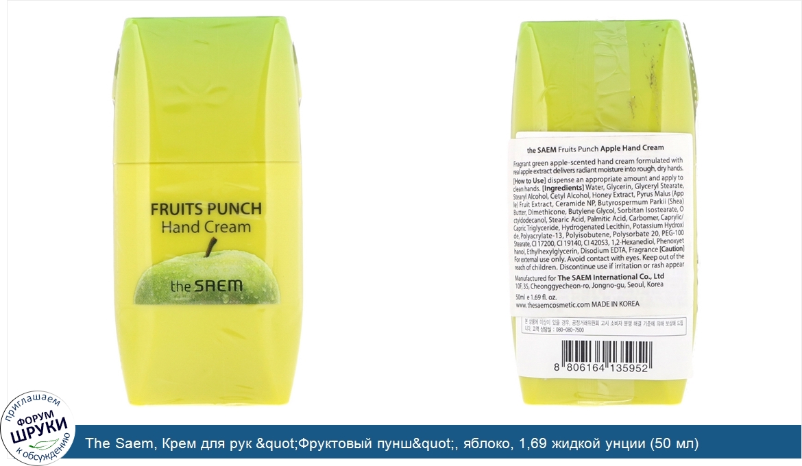 The Saem, Крем для рук "Фруктовый пунш", яблоко, 1,69 жидкой унции (50 мл)
