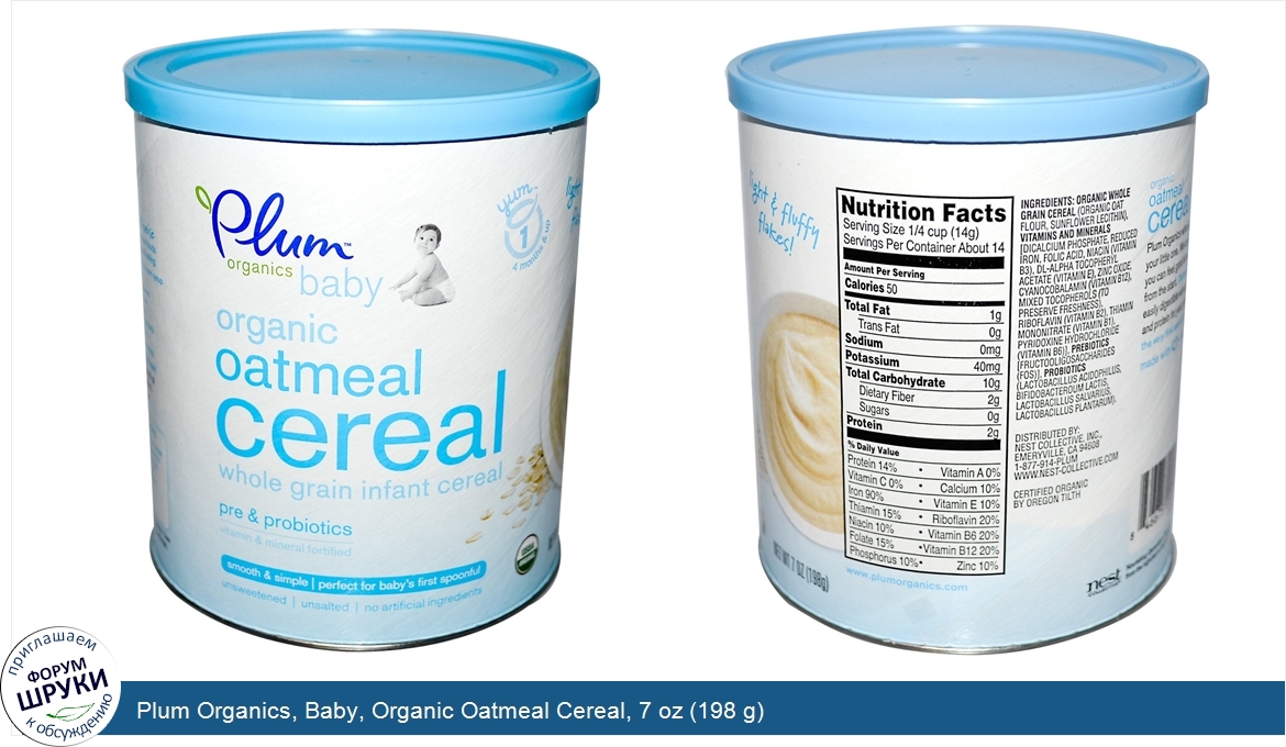 Друзья, если у вас есть отзыв/дополнение/комментарий/вопрос относительно Plum Organics, Baby, Organic Oatmeal Cereal, 7 oz (198 g) - напишите его ответом в эту тему (это будет полезно всему сообществу в целом и вам в отдельности).