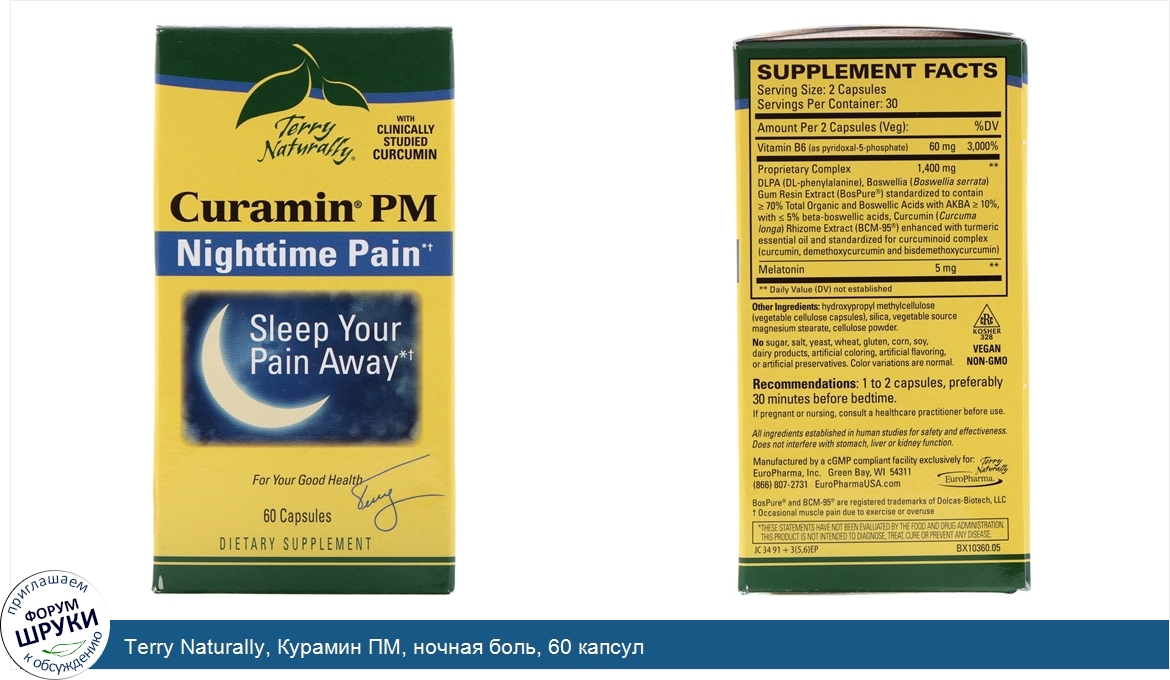 Terry Naturally, Курамин ПМ, ночная боль, 60 капсул