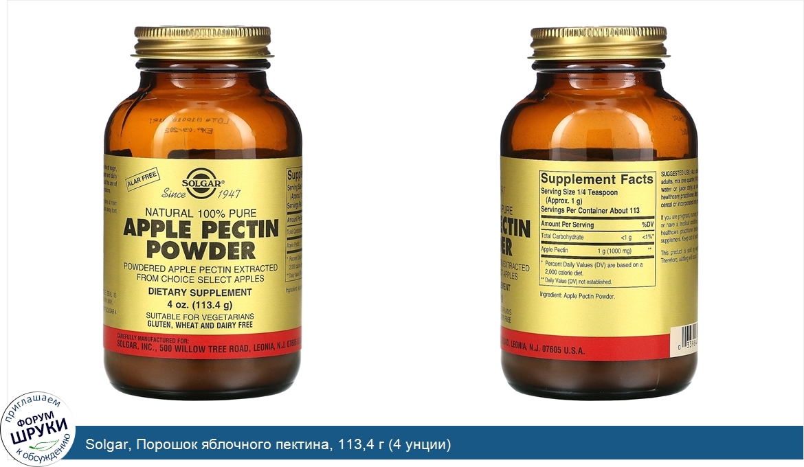 Друзья, если у вас есть отзыв/дополнение/комментарий/вопрос относительно Solgar, Порошок яблочного пектина, 113,4 г (4 унции) - напишите его ответом в эту тему (это будет полезно всему сообществу в целом и вам в отдельности).