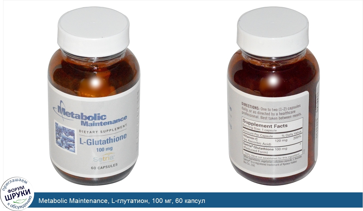 Metabolic Maintenance, L-глутатион, 100 мг, 60 капсул