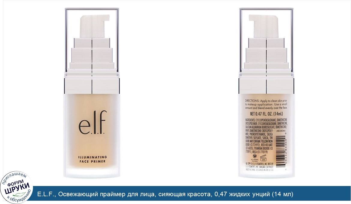 Друзья, если у вас есть отзыв/дополнение/комментарий/вопрос относительно E.L.F., Освежающий праймер для лица, сияющая красота, 0,47 жидких унций (14 мл) - напишите его ответом в эту тему (это будет полезно всему сообществу в целом и вам в отдельности).