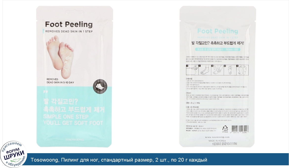 Друзья, если у вас есть отзыв/дополнение/комментарий/вопрос относительно Tosowoong, Пилинг для ног, стандартный размер, 2 шт., по 20 г каждый - напишите его ответом в эту тему (это будет полезно всему сообществу в целом и вам в отдельности).