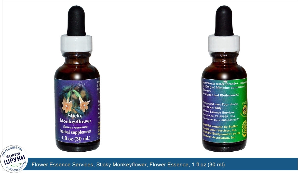 Flower Essence Services, Sticky Monkeyflower, Flower Essence, 1 fl oz (30 ml)