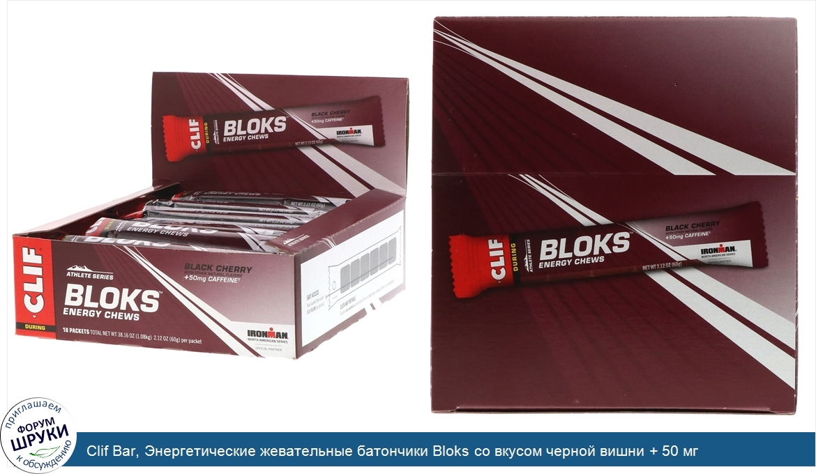 Друзья, если у вас есть отзыв/дополнение/комментарий/вопрос относительно Clif Bar, Энергетические жевательные батончики Bloks со вкусом черной вишни + 50 мг кофеина, 18 пакетиков по 2,12 унц. (60 г) каждый - напишите его ответом в эту тему (это будет полезно всему сообществу в целом и вам в отдельности).