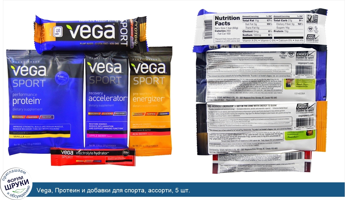 Vega, Протеин и добавки для спорта, ассорти, 5 шт.