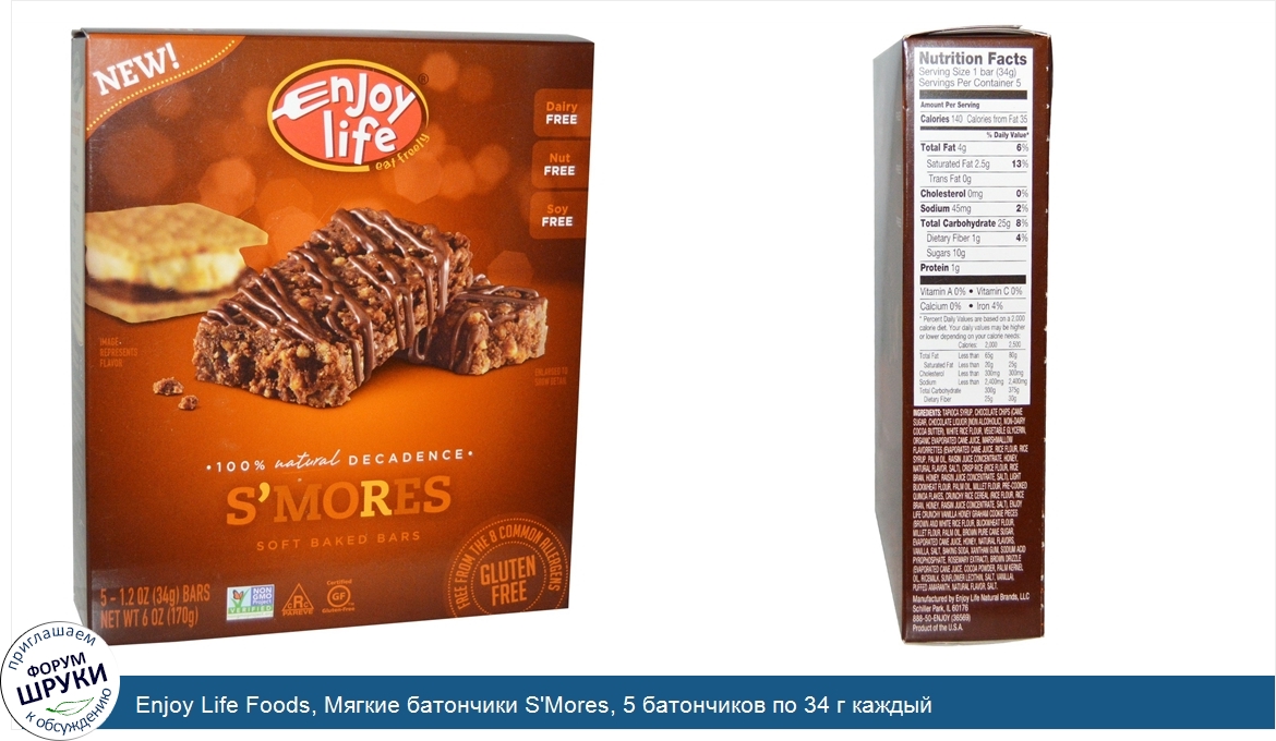 Друзья, если у вас есть отзыв/дополнение/комментарий/вопрос относительно Enjoy Life Foods, Мягкие батончики S'Mores, 5 батончиков по 34 г каждый - напишите его ответом в эту тему (это будет полезно всему сообществу в целом и вам в отдельности).