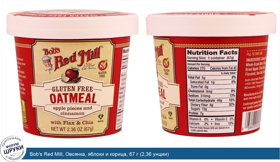 Друзья, если у вас есть отзыв/дополнение/комментарий/вопрос относительно Bob's Red Mill, Овсянка, яблоки и корица, 67 г (2,36 унции) - напишите его ответом в эту тему (это будет полезно всему сообществу в целом и вам в отдельности).