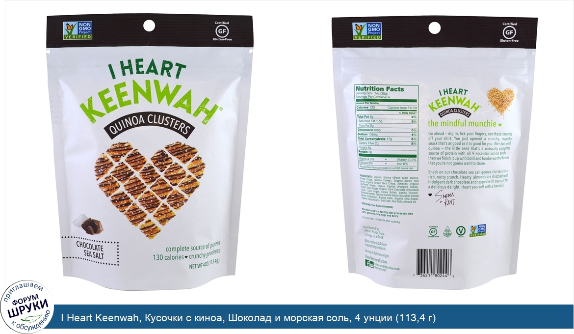 Друзья, если у вас есть отзыв/дополнение/комментарий/вопрос относительно I Heart Keenwah, Кусочки с киноа, Шоколад и морская соль, 4 унции (113,4 г) - напишите его ответом в эту тему (это будет полезно всему сообществу в целом и вам в отдельности).