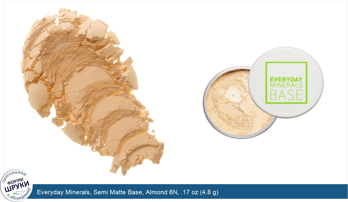Друзья, если у вас есть отзыв/дополнение/комментарий/вопрос относительно Everyday Minerals, Semi Matte Base, Almond 6N, .17 oz (4.8 g) - напишите его ответом в эту тему (это будет полезно всему сообществу в целом и вам в отдельности).