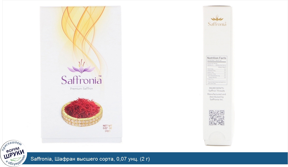 Друзья, если у вас есть отзыв/дополнение/комментарий/вопрос относительно Saffronia, Шафран высшего сорта, 0,07 унц. (2 г) - напишите его ответом в эту тему (это будет полезно всему сообществу в целом и вам в отдельности).