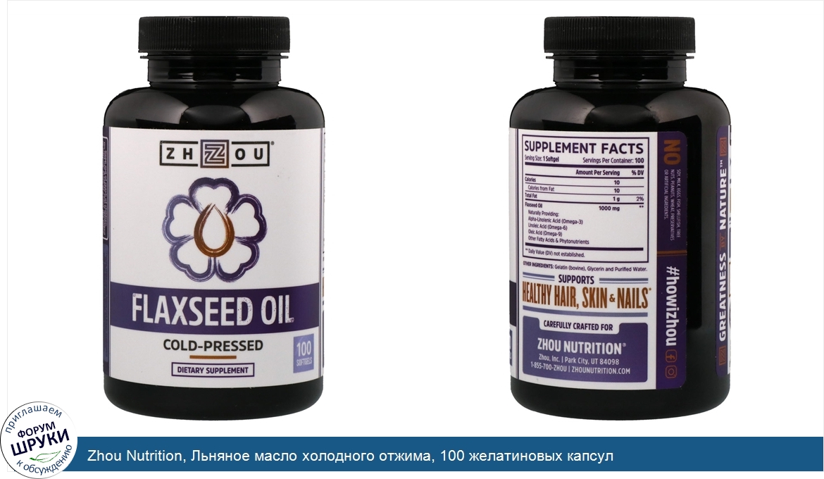 Zhou Nutrition, Льняное масло холодного отжима, 100 желатиновых капсул