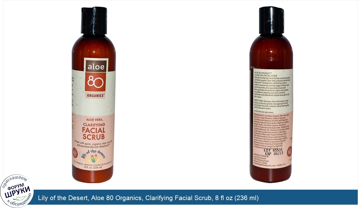Друзья, если у вас есть отзыв/дополнение/комментарий/вопрос относительно Lily of the Desert, Aloe 80 Organics, Clarifying Facial Scrub, 8 fl oz (236 ml) - напишите его ответом в эту тему (это будет полезно всему сообществу в целом и вам в отдельности).